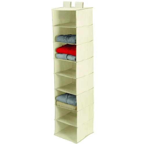 Honey-Can-Do SFT-01253 8-shelf hanging vertical closet organizer, natural canvas. Turn a jumbled mess into a well-organized closet with our soft storage solutions. This durable piece keeps clutter at bay using every inch of available space for endless storage possibilities. This organizer has reinforced shelves for great capacity and easily attaches directly to your closet rod with Velcro-style straps. Ideal for organizing bulky sweaters, pants, shirts and bags. One item in Honey-Can-Do’s mix and match collection of sturdy canvas closet organizers available in several colors, it’s an ideal blend of economy, strength and style. Matching storage drawers (SFT-01255)instantly create more space for socks, undergarments and accessories.